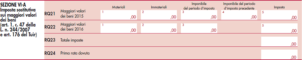 Nello stesso quadro (rigo RQ21) potranno essere inseriti i maggiori valori relativi a conferimenti avvenuti nel 2015, per i quali si è optato per l’applicazione “ritardata” dell’imposta sostitutiva.