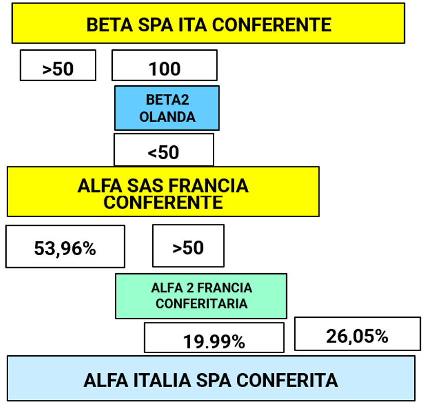 - i 2 soci conferenti sono una società francese che detiene il 53,96% e Beta Italia che detiene il 26,05%;