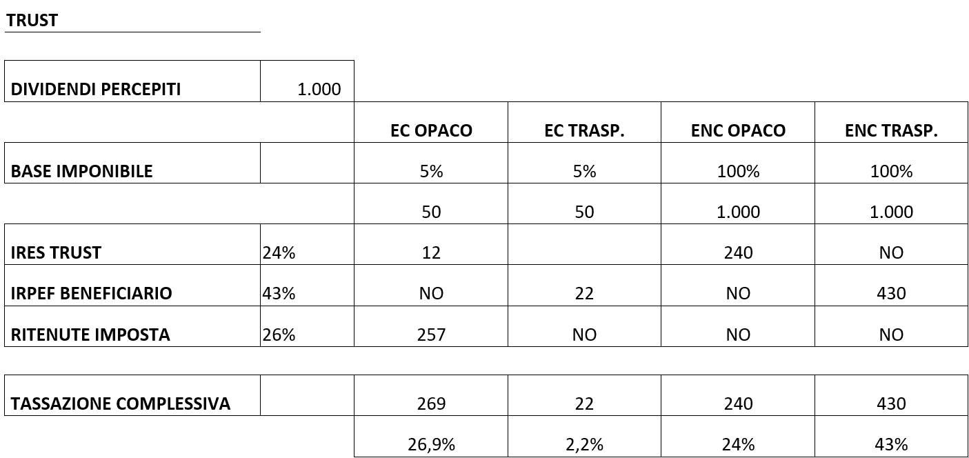 - Trust ente non commerciale opaco;