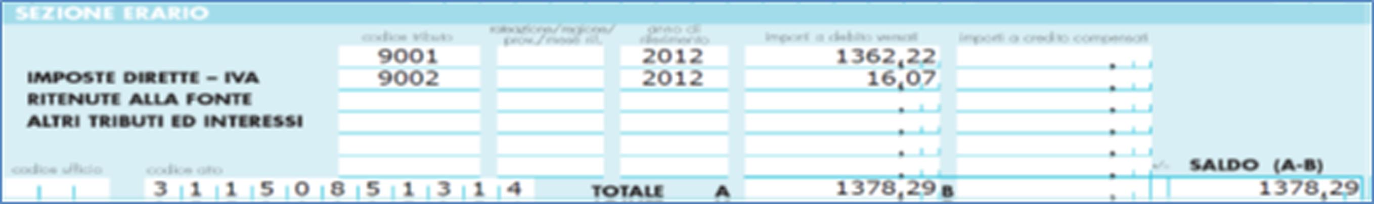 - gli interessi in misura pari all’1% annuo, commisurati ai 40 giorni di ritardo e rapportati alla somma complessiva della originaria delega, esponendoli sul modello F24 con il codice 1980.