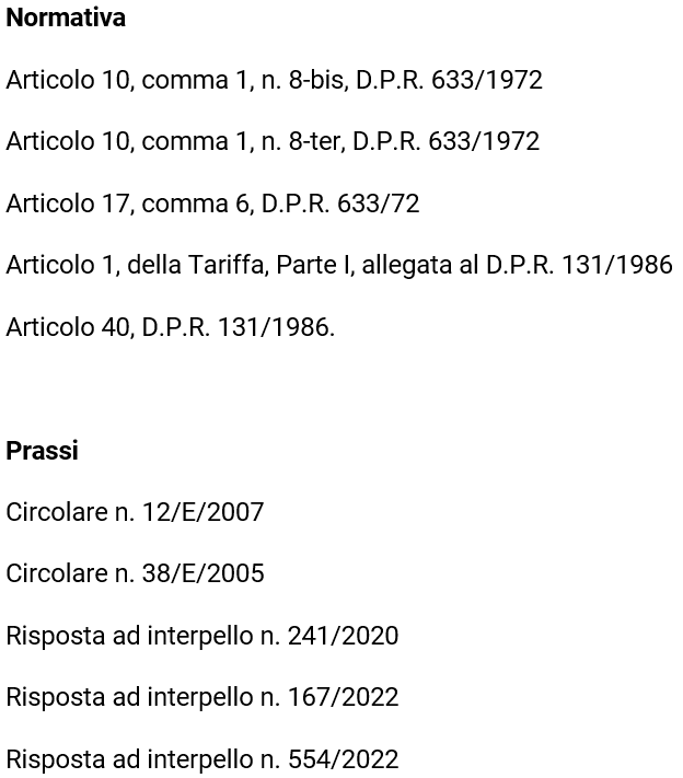| Cedente | Termini/Tipologia di abitativo | Iva |