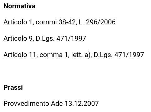 - articolo 11, comma 1, lett. a), D.Lgs. 471/1997, da euro 250,00 ad euro 2.000,00, in caso di omessa, incompleta o non veritiera trasmissione dei dati in esame.