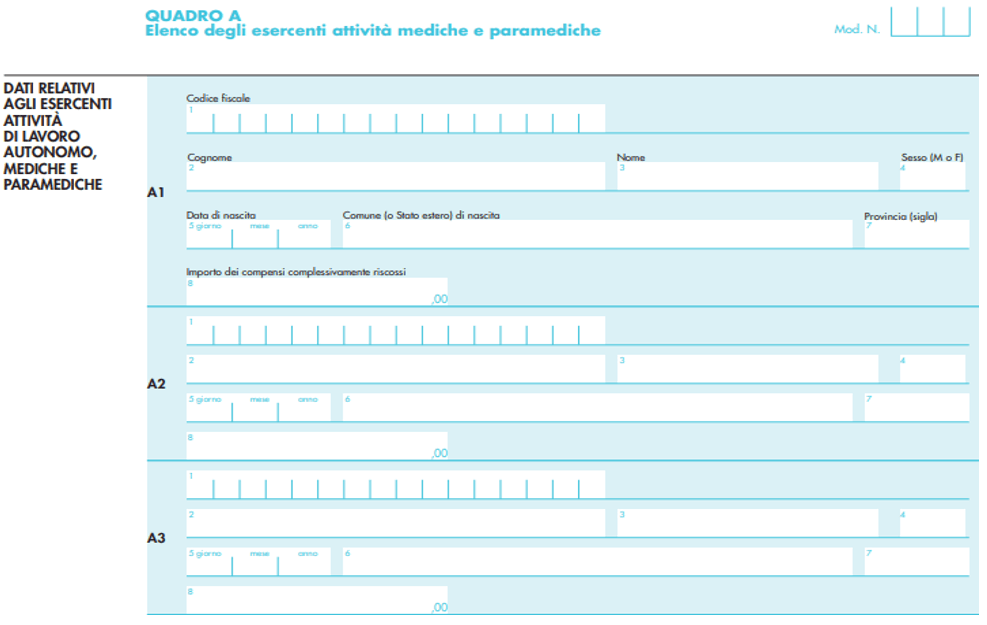 Relativamente ai compensi riscossi dall’1.1 al 31.12 di un determinato anno, la comunicazione deve essere inviata entro il 30 Aprile dell’anno successivo. Con riferimento ai compensi riscossi nel 2023 (1.1.2023 – 31.12.2023), distintamente per ciascun medico/paramedico, il modello deve essere trasmesso, quindi, entro il prossimo 30.4.2024