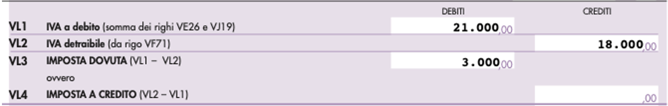 Il quadro VL, dedicato alla liquidazione dell’imposta annuale, deve essere così compilato: