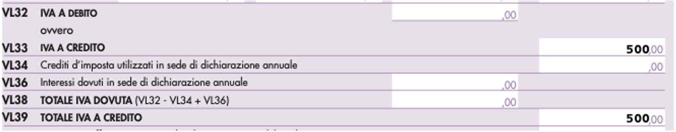 - nei righi VL32 e VL39 si riporta l’importo dell’imposta a credito;
