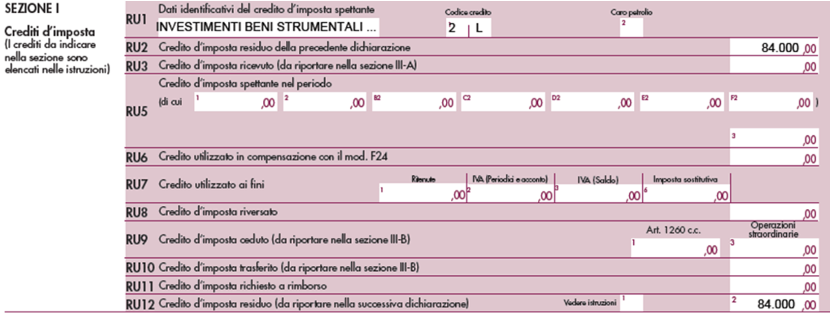 - nel rigo RU12, l’ammontare del credito d’imposta residuo;