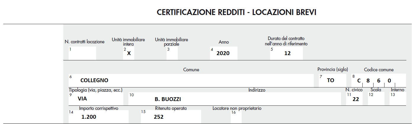 CU2020 e locazioni brevi di durata non superiore a 30 giorni