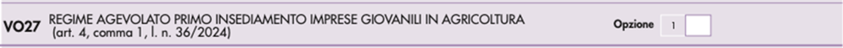 Infine, si segnala come debutta, al rigo VO27, la scelta che possono fare i giovani imprenditori agricoli, per il regime di tassazione forfettizzata previsto dall’articolo 4, L. 36/2024.