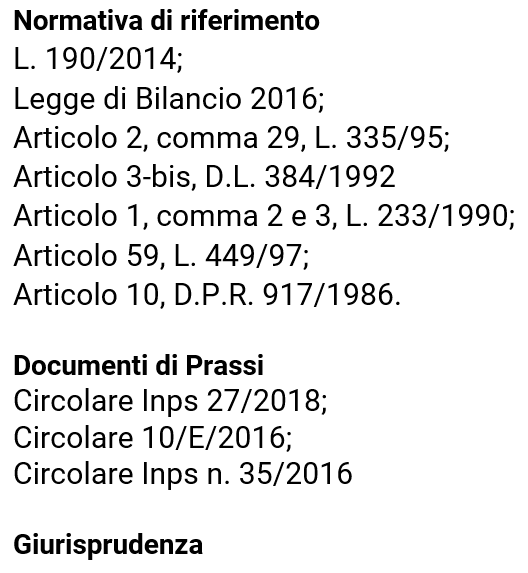 Per quanto riguarda l’accredito dei contributi previdenziali, si applica la disposizione dell’articolo 2, comma 29, L. 335/1995 (che fa riferimento alla Gestione Separata Inps), secondo cui:
