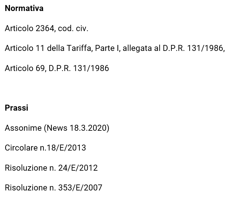 - i verbali di approvazione del bilancio che danno luogo a distribuzione di utili vanno ricondotti nell’ambito applicativo della lettera d) dell’articolo 4 della Tariffa, parte prima, allegata al D.P.R. 131/1986, che ricomprende tutte le assegnazioni fatte ai soci sia durante lo svolgimento dell’attività sociale sia al momento dello scioglimento della società e della sua liquidazione (Risoluzione n. 174/E/2000);