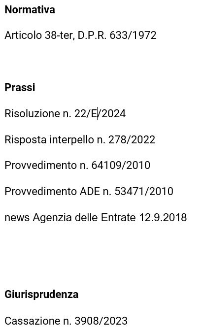 Da ultimo, come anche precisato dall’Agenzia delle entrate (risposta interpello n. 278/2022), il credito Iva chiesto a rimborso dai soggetti passivi extra-UE, ai sensi dell’articolo 38-ter, D.P.R. 633/1972, non può essere ceduto a terzi
