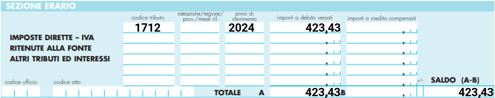 Il modello F24 andrà compilato come segue: