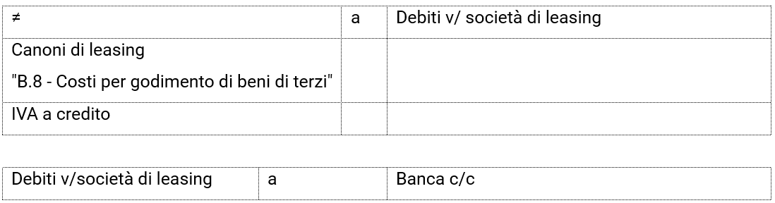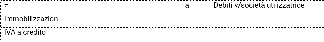 - nel passivo dello Stato patrimoniale deve essere iscritto il debito verso la società di leasing;