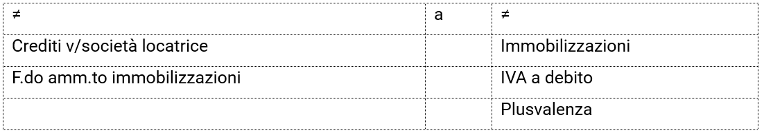 - la vendita del bene strumentale ad una società di locazione finanziaria (società di leasing), con eventuale plusvalenza e/o minusvalenza in capo alla società venditrice;