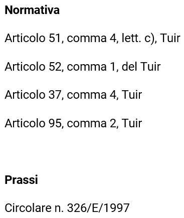 - anche con riferimento ai “collaboratori dell’impresa”, in virtù del rinvio operato dall’articolo 52, comma 1, del Tuir (in tema di determinazione dei redditi assimilati a quelli di lavoro dipendente) all’articolo 51 del Tuir, ai fini del calcolo del “fringe benefit” in capo al “collaboratore”.