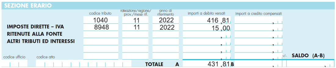 | 11 | Il codice tributo. |