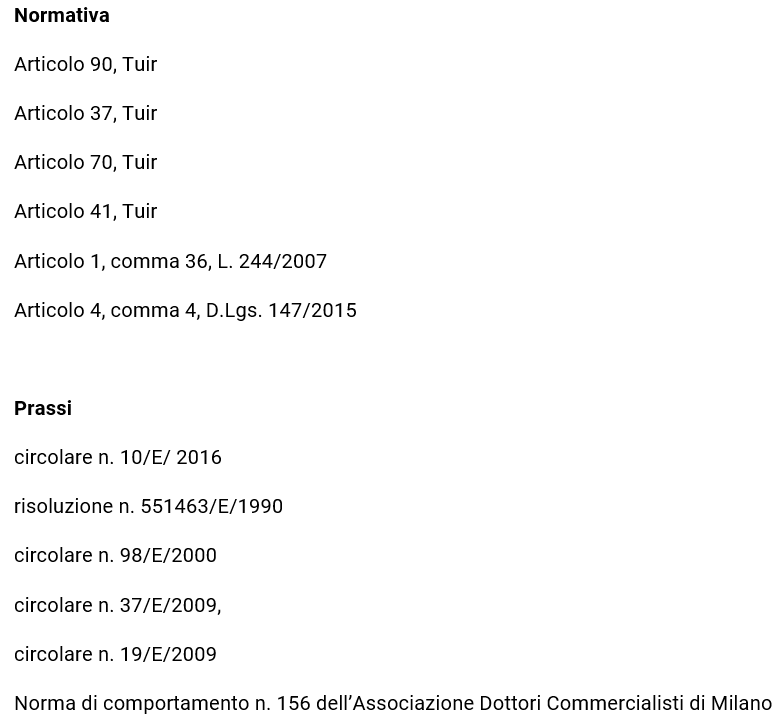 - gli interessi passivi a servizio di finanziamenti contratti per la costruzione o per l’acquisto degli immobili di cui all’articolo 90, comma 1, Tuir, non rientrano tra le spese e gli altri componenti negativi, per cui opera la previsione di indeducibilità assoluta di cui al comma 2 della medesima disposizione;