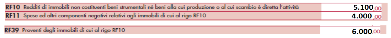 La società ALFA S.r.l. ha concesso in locazione un appartamento di categoria A/2 e rendita catastale (rivalutata) pari ad euro 800, ad un canone annuo di 6.000 euro (var – RF39). In relazione all’immobile locato, la suddetta impresa ha sostenuto costi per complessivi 4.000 euro di cui: