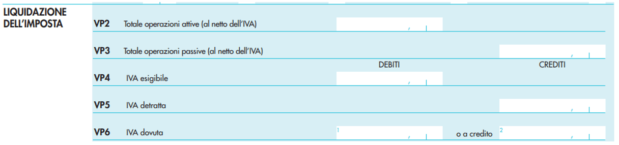 Per ciascuna liquidazione periodica deve essere compilato un distinto modulo del quadro VP. Pertanto, i contribuenti che effettuano esclusivamente: