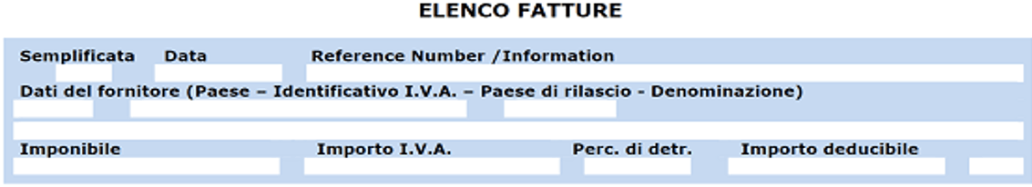 - Dati delle fatture che legittimano il diritto al rimborso