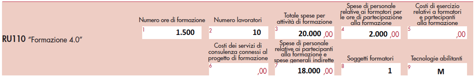 Per effetto di quanto disposto dall’articolo 6, comma 4, D.M. 04.05.2018, vanno indicati nella dichiarazione dei redditi i dati relativi al numero di ore e dei lavoratori che prendono parte alla formazione.