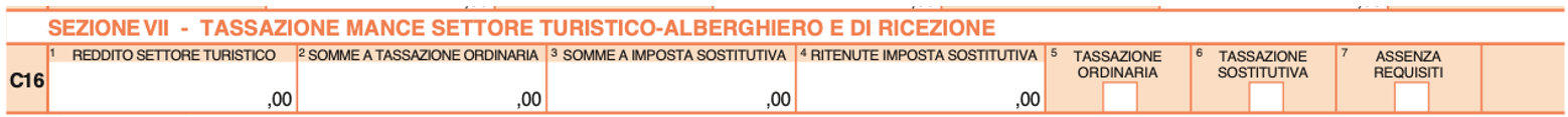 La sezione VII è composta da un solo rigo, il C16, il quale, a sua volta, è suddiviso in sette colonne: