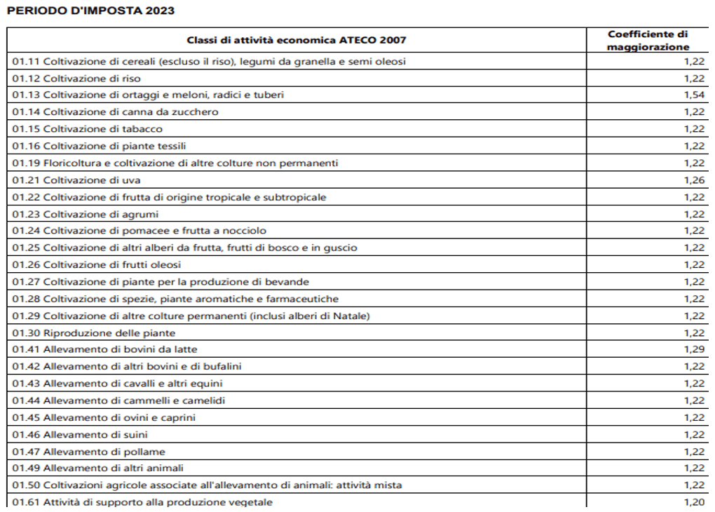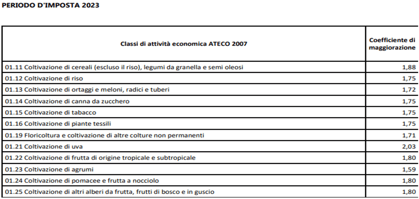 Con il D.M. 24.6.2024 il Ministero dell’Economia e delle Finanze ha approvato i coefficienti specifici per ogni attività, individuati sulla base dei codici ATECO, distinti in tre diverse tabelle, a seconda che il contribuente, nel periodo d’imposta antecedente a quello in corso al 30.9.2023, abbia svolto attività economiche per le quali: