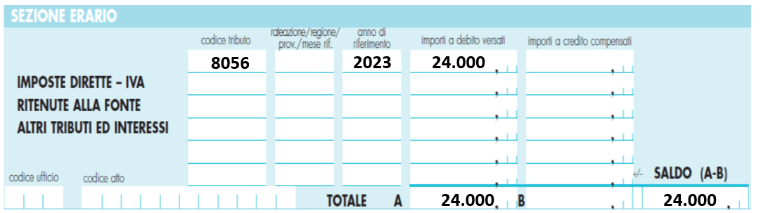 L’imposta dovuta, pari ad euro 14.000= (euro 16.000 – euro 2.000) è stata versata in un’unica soluzione in data 10.10.2023.