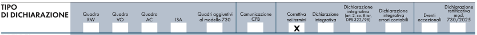 - di presentare un modello Redditi PF 2025 entro il termine del 31 ottobre 2025, inserendo, il flag all’interno della casella denominata “Correttiva nei termini” del frontespizio;