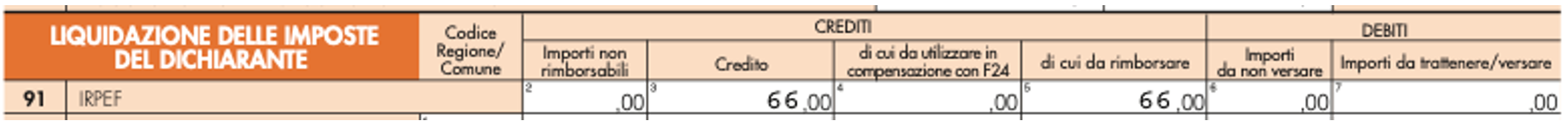 Tale modello liquidava con un’imposta ordinaria a credito, chiesta a rimborso, per 66,00 euro.