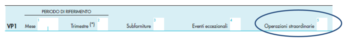 Nel caso in cui il soggetto avente causa riporti nel rigo VP8 “Credito periodo precedente” della propria Comunicazione il credito maturato dal soggetto dante causa nell’ultima liquidazione periodica deve essere barrata la casella “Operazioni straordinarie” nel rigo VP1 del quadro VP.