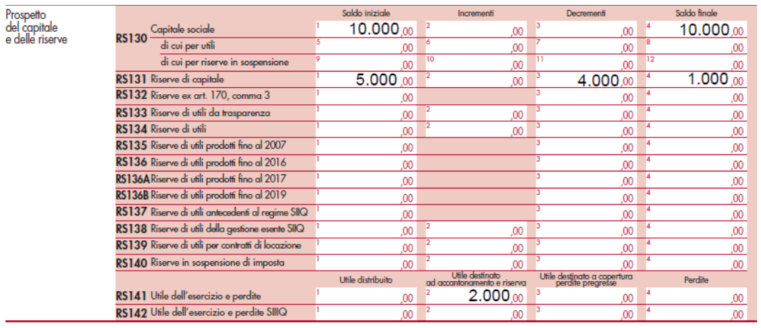 Ai fini compilativi, atteso che ciò che rileva è la natura fiscale delle poste del patrimonio netto, si deve tener conto che i dati richiesti nei righi delle “riserve” vanno forniti per “masse”, raggruppando le poste di natura omogenea, anche se rappresentate in bilancio da voci distinte.