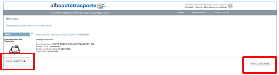 - accedere alla funzione di “Pagamento Quota Albo Trasportatori“.