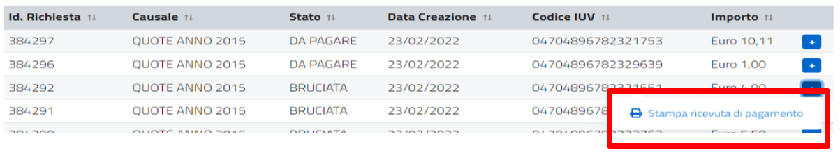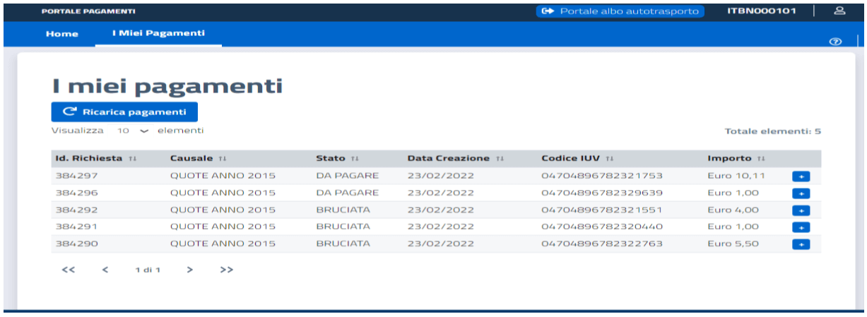 La posizione debitoria pagata sarà poi visualizzata con lo stato “Bruciata”.