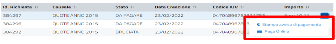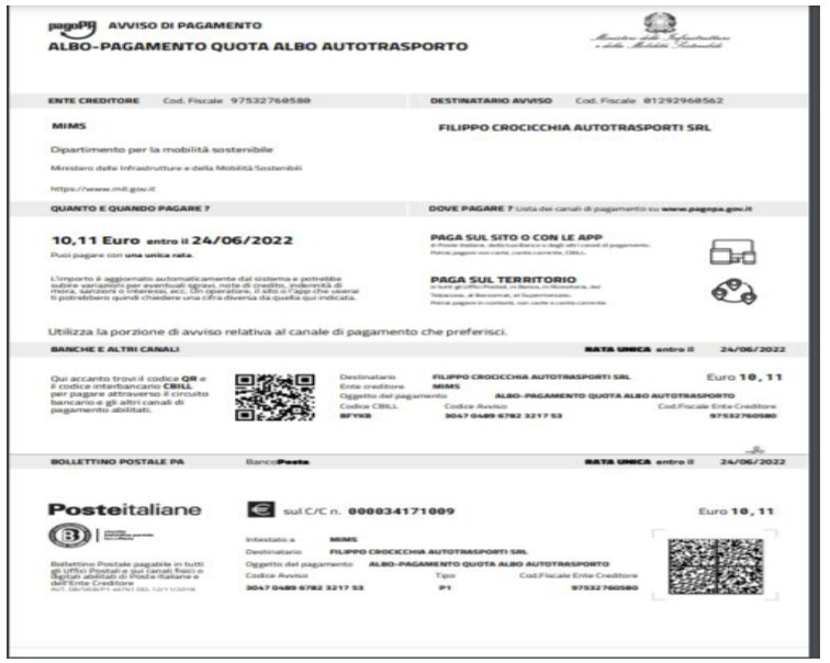 Per effettuare il pagamento, è possibile altresì scaricare il PDF dell’avviso di pagamento e provvedere al relativo pagamento: