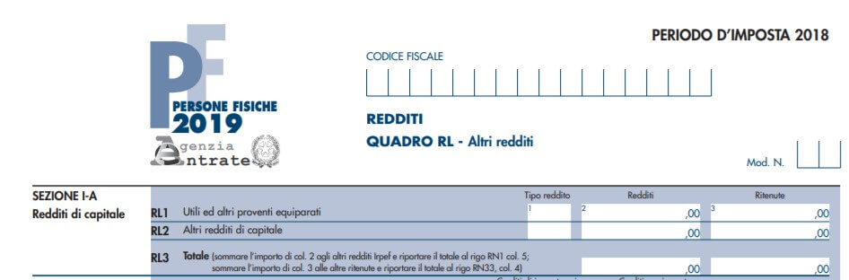 In particolare, nel modello Redditi delle persone fisiche 2019 relativo al periodo di imposta 2018, dovranno essere indicati nel rigo RL1, gli utili e gli altri proventi equiparati in qualunque forma corrisposti da società di capitali o enti commerciali, residenti e non residenti, riportati nell’apposita certificazione.