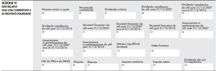 - utili e di altri proventi equiparati corrisposti da imprese residenti in Italia formatisi con utili prodotti a partire dall’esercizio successivo a quello in corso al 31 dicembre 2007 e fino all’esercizio in corso al 31 dicembre 2016 – “Tipo reddito” codice 5, riportando nella colonna 2 “Redditi” il 49,72% della somma desumibile dalla certificazione;