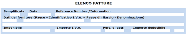 - Dati delle fatture che legittimano il diritto al rimborso