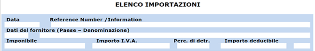 - Dati dei documenti di importazione che legittimano il diritto al rimborso
