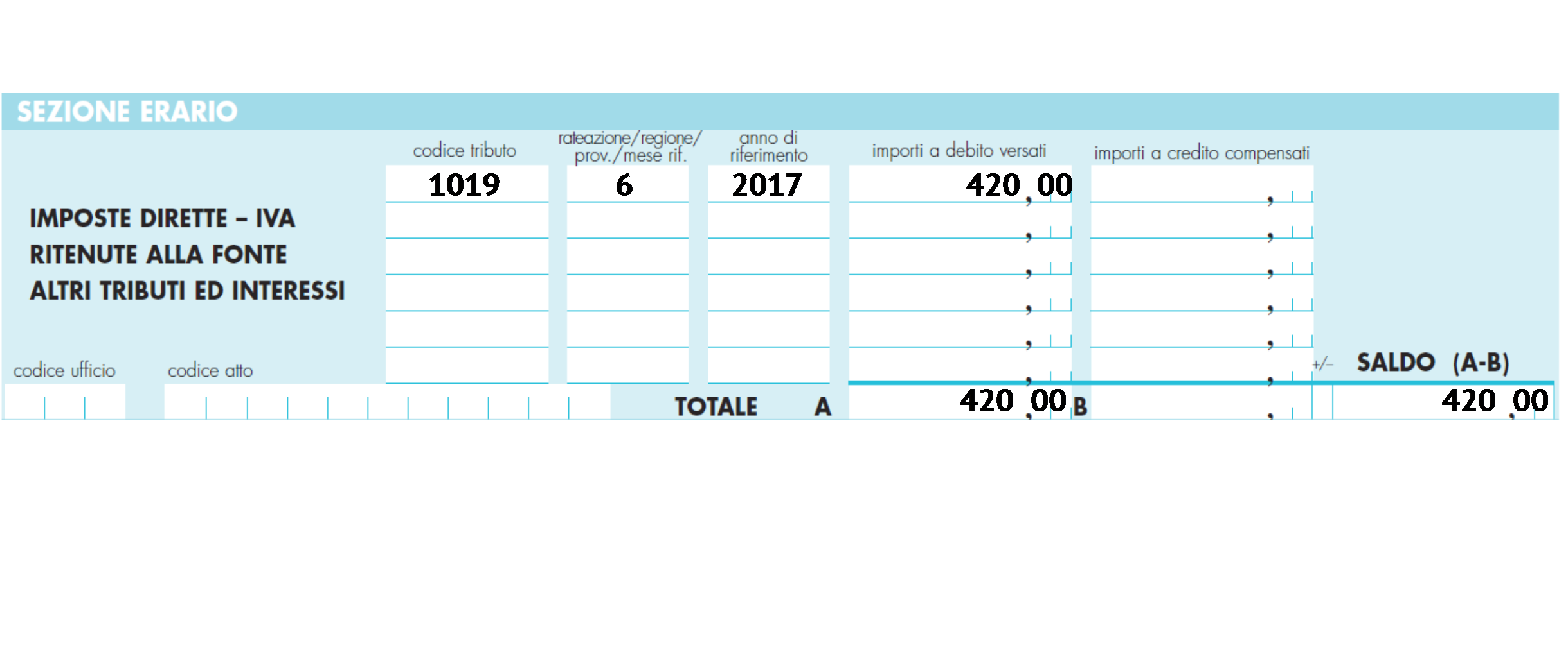 - utilizzando i seguenti codici tributo: “1019” (Ritenute del 4% a titolo di acconto dell’Irpef) e “1020” (Ritenute del 4% operate all’atto del pagamento a titolo d’acconto dell’Ires).