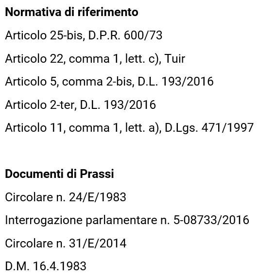 Analogo principio è esteso alle ritenute su provvigioni inerenti i rapporti di commissione, agenzia, mediazione, rappresentanza di commercio e di procacciamento d’affari, previa modifica introdotta all’articolo 25-bis, comma 3, D.P.R. 600/1973, dall’articolo 5, comma 2-bis e 2-ter, D.L. 193/2016.