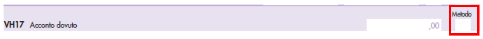 Il contribuente è altresì tenuto a dare evidenza, nella dichiarazione annuale Iva (rigo VH17), del metodo adottato ai fini della determinazione dell’acconto Iva, utilizzando uno dei seguenti codici: