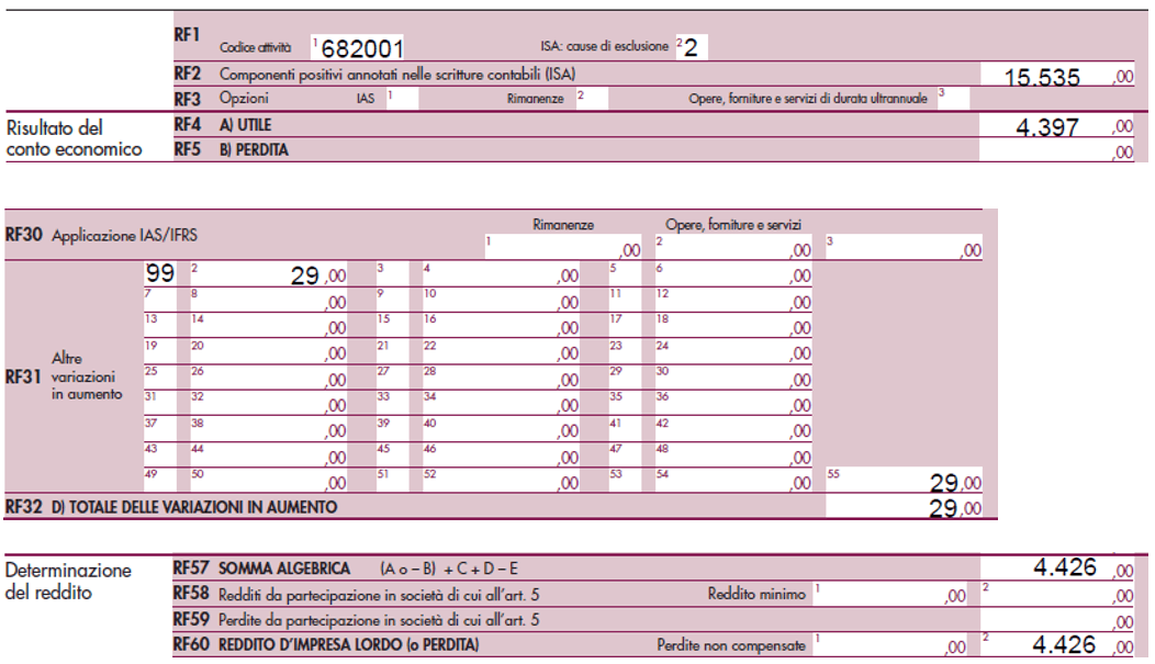 - dall’1.1.2023 al 31.8.2023 (243 giorni, periodo ante trasformazione) il canone, confluito tra i ricavi d’impresa, è stato pari a 15.535 euro e la società ha conseguito un utile di 4.397 euro a cui è corrisposto un reddito di 4.426 euro (con 29 euro di altre variazioni in aumento);