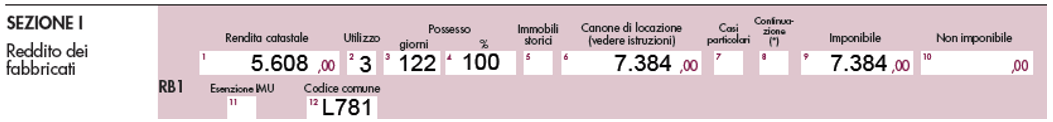 - dall’1.9.2023 al 31.12.2023 (122 giorni, periodo post trasformazione) il canone è stato pari a 7.772 euro. La quota imponibile è pari quindi a 7.384 euro (= 95% ×772).