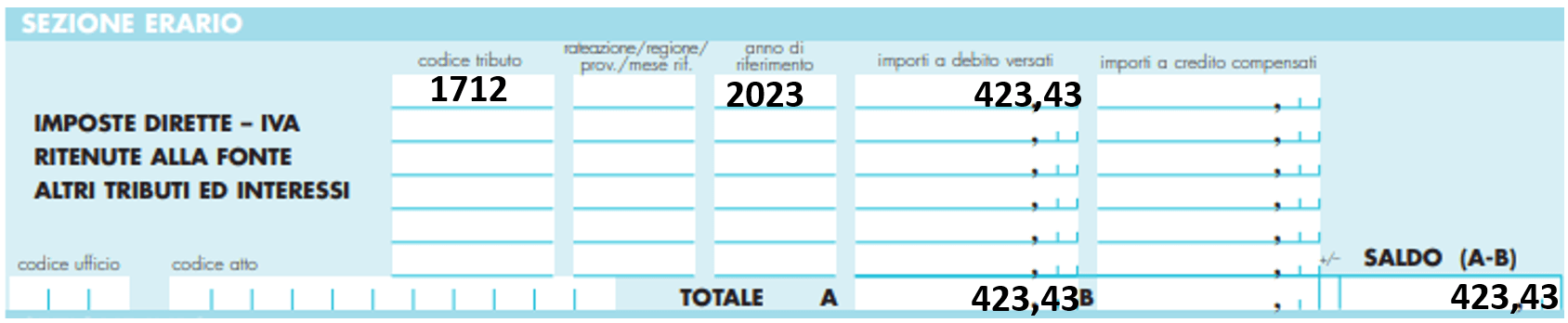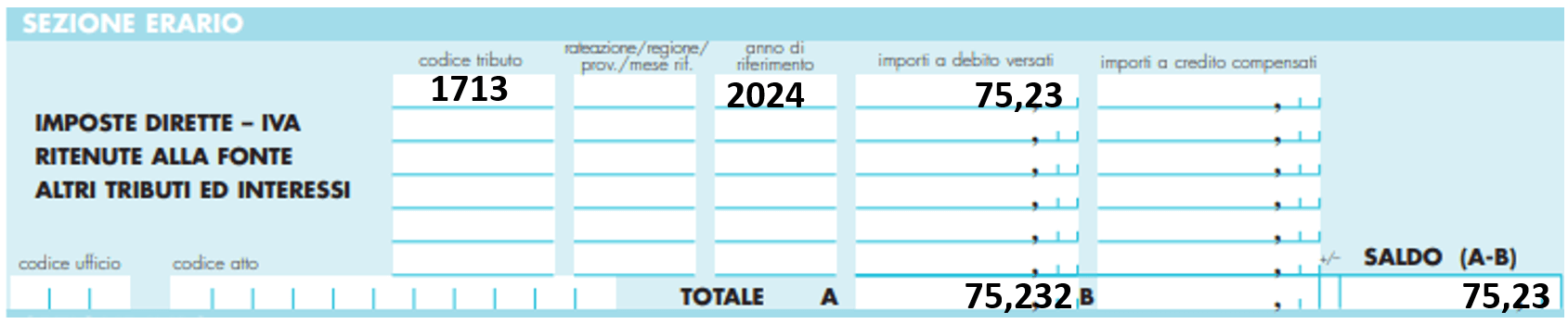 Il modello F24 andrà compilato come segue: