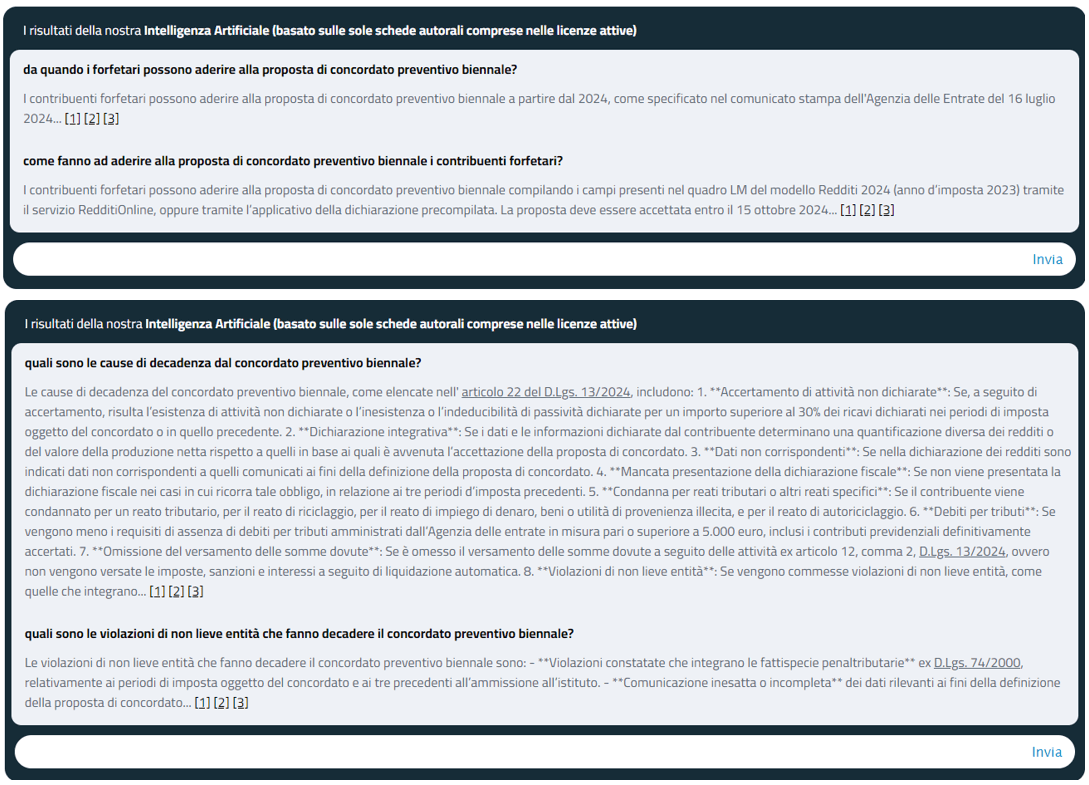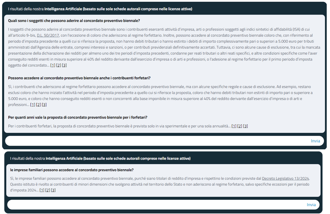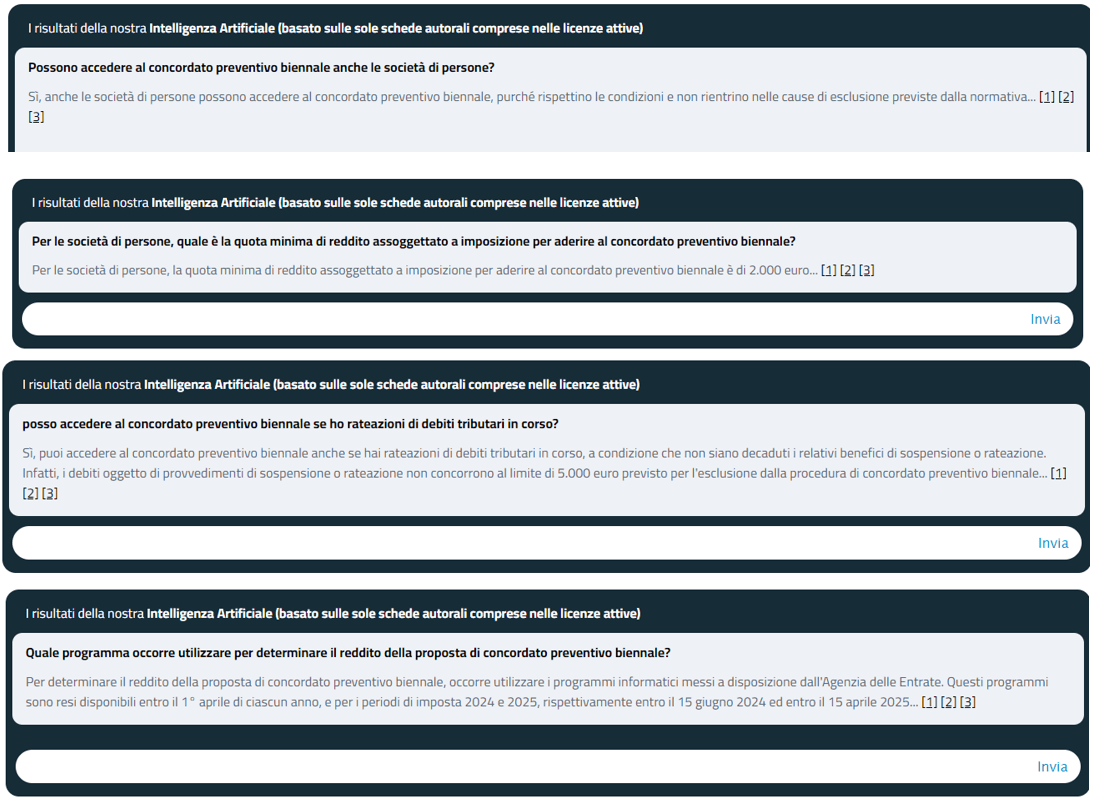 Di seguito, in rassegna, le principali risposte rese dal nostro sistema di intelligenza artificiale in materia di concordato preventivo biennale.