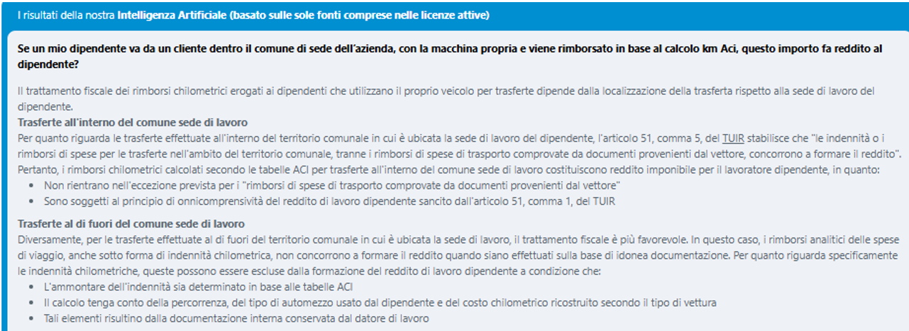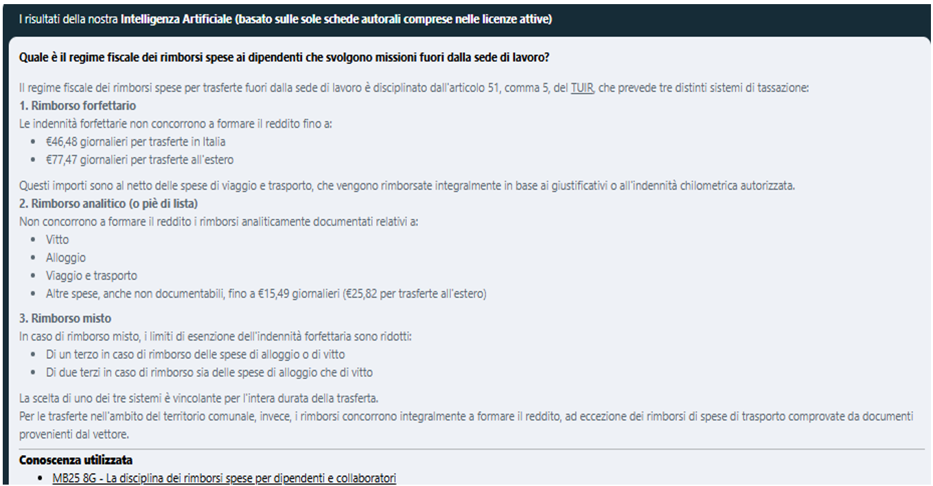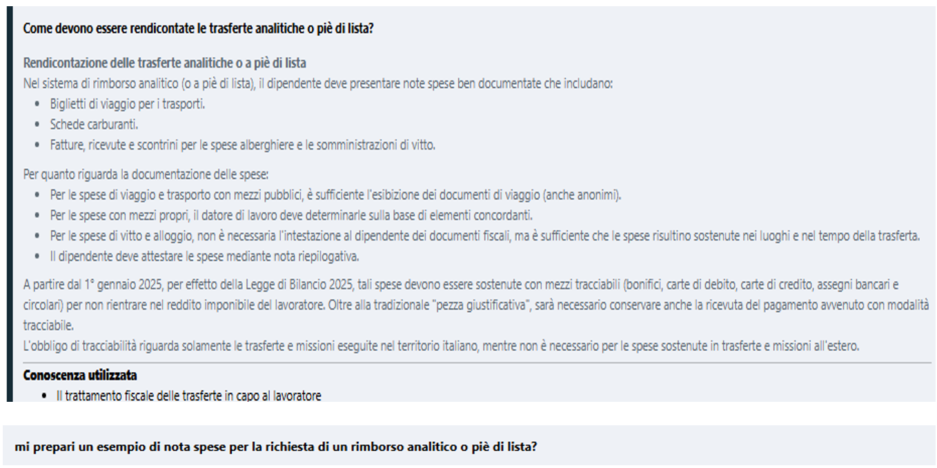 Risposte AI sulla disciplina dei rimborsi spese per missioni o trasferte dei lavoratori dipendenti