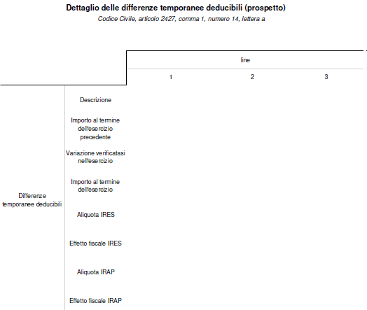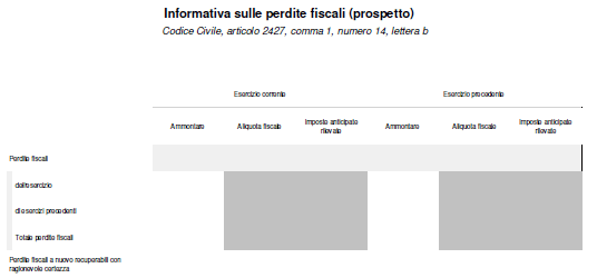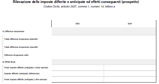 Va evidenziato che, in caso di stanziamento delle imposte anticipate su perdite fiscali, in sede di redazione della nota integrativa, l’articolo 2427, co. 1, n. 14) cod. civ. prevede la redazione di un apposito prospetto contenente la descrizione delle differenze temporanee che hanno comportato la rilevazione delle imposte anticipate, con indicazione dell’aliquota applicata, delle variazioni rispetto all’esercizio precedente, degli importi accreditati o addebitati a conto economico o a patrimonio netto, delle voci escluse dal computo e delle relative motivazioni.