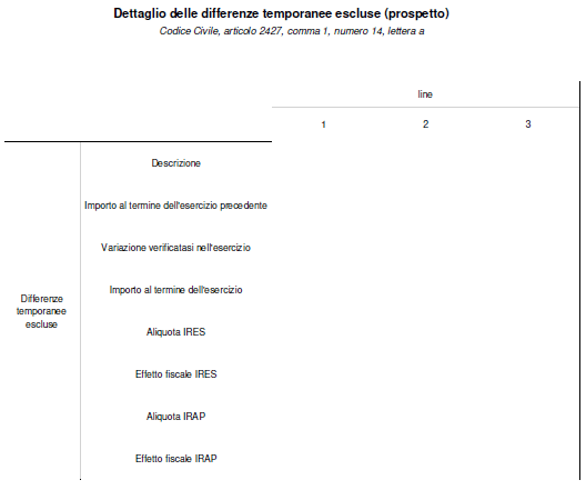 A tal proposito si riportano di seguito le specifiche tabelle di nota integrativa previste dalla tassonomia xbrl solo per il bilancio in forma ordinaria.
