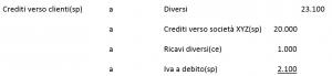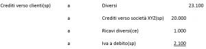 La scrittura vedrà quindi contrapposto al debito verso il fornitore un credito verso la società mandante. Supponiamo che la mandataria sostenga spese in favore della mandante per euro 20.000 e che l’operazione sia soggetta ad iva al 10%: